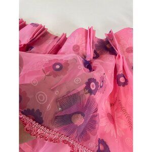 Vintage 70s valance curtain, pink, purple daisies, swag ruffled panel