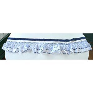 Vintage 70s valance curtain, white, navy, blue checkered pattern, ruffled