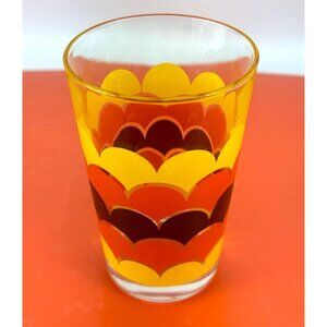 Vintage 70s water glass tumbler, groovy orange yellow brown wave print, Italy