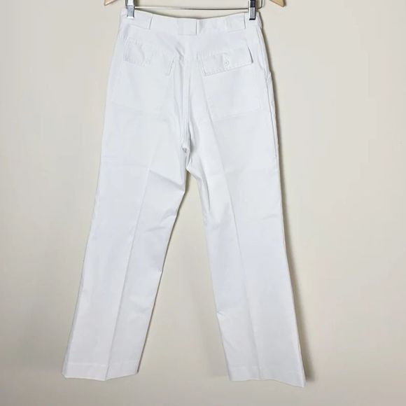 Vintage 70s white trouser pants. Nautical inspired high waisted cargo pants. 30