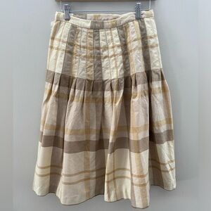Stylish plaid skirt in tan and cream, perfect for any occasion. Elevate your wardrobe with this versatile piece.