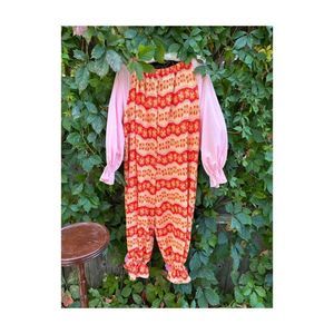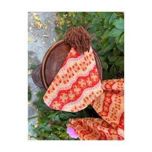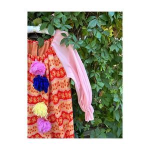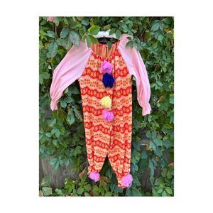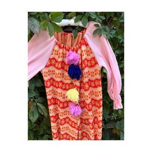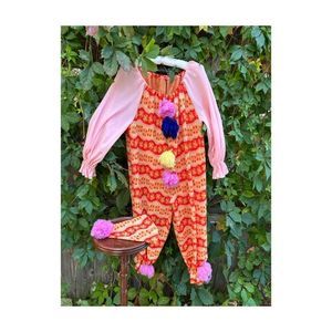 Vintage 70s Handmade Knit Clown Costume PomPoms 2 Hats Pink Red Yellow