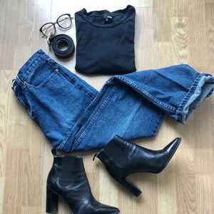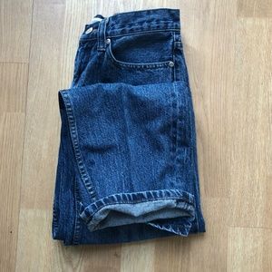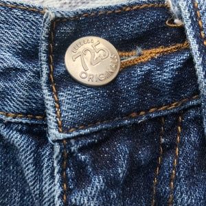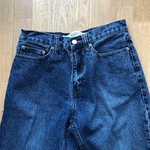 Great vintage relaxed fit mom jeans from 725 Originals, not distressed, no rips or holes, darker wash with slight fading on the legs
