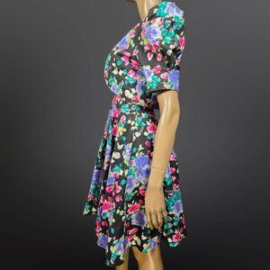 Vintage 80 Dark Floral Swing Dress With Bolero Jacket Size S Romantic Feminine