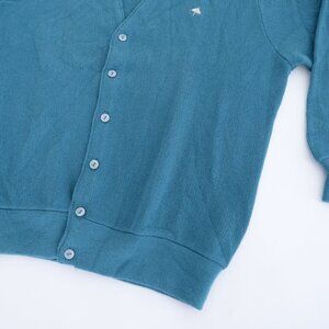 Vintage '80S Arnold Palmer Teal Wool Fine Knit Button Up Cardigan Sweater Large