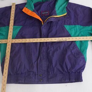 Vintage '80S Gant Purple Green Cotton Zip Up Nautical Windbreaker Hood Jacket XL