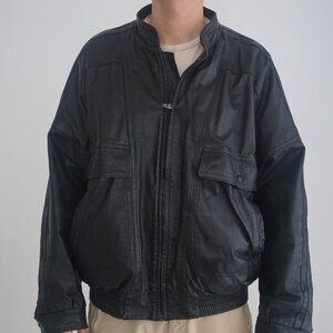 Vintage '80S Sears The Men'S Store Black Zip Up 100% Leather Bomber Jacket L