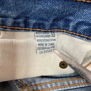 Please reference pictures for knee wear, heel drag and distressing. These jeans have been hemmed and shrunk