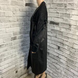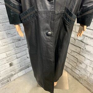 Vintage 80s 90s Leather Suede Trench Coat Long Medium Black Maxi Retro Overcoat