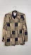 Vintage 80s 90s black tan beige geometric print long sleeve tunic top blouse 8P