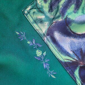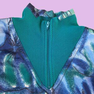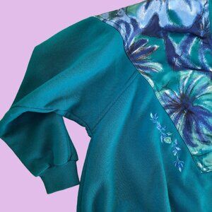 * Vintage 80's Lady Footlocker teal quarter zip sweatshirt with satin abstract floral yoke and floral embroidery