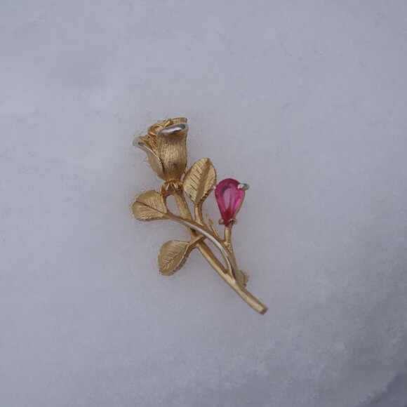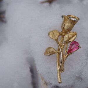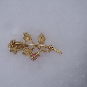 Vintage 80s Avon rose brooch pink glass stone.size is 2 inches long by 1 inch wide.In great condition.