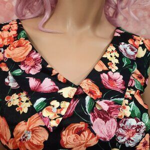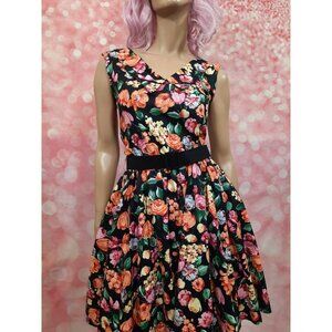 * Vintage 80's black floral cotton sleeveless dress