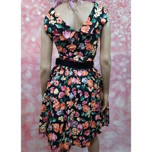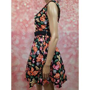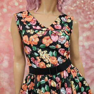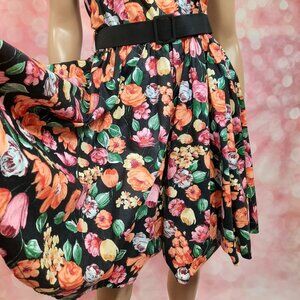 Vintage 80s Belted Floral Dress Prom Party S Retro 50s Sleeveless Crinoline