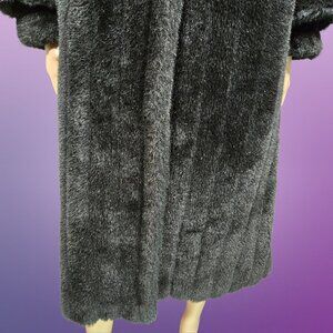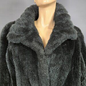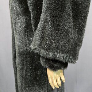 Vintage 80s Black Full Length Faux Fur Coat Size M Jacket Glam Mob Wife
