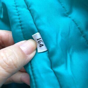 Marked sz164, fits like a Small with room to layer underneath! Here are the approx measurements: