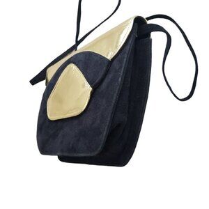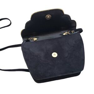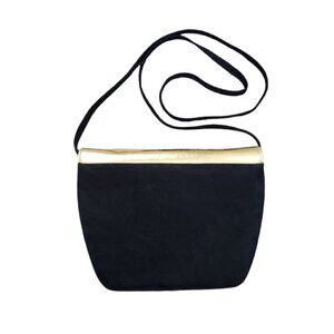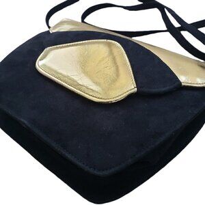 Vintage 80's suede small shoulder crossbody clutch bag in black and gold