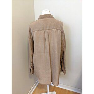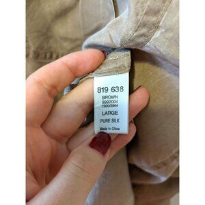 Vintage 80s Bloor & Yonge Pure Silk Blouse Long Sleeve Beige Utility Western L