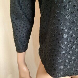 Vintage 80s Blouse Black Ruched Puff Sleeves Womens M Textured Dots