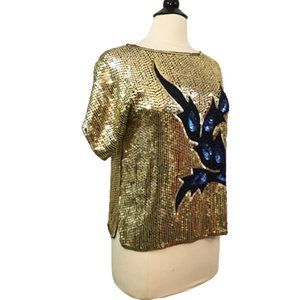 Vintage 80s Blouse Sequin Beaded Silk Flapper Style Tunic Top Trophy