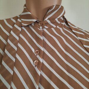 * Vintage 80's beige/white striped semi sheer blouse with removable tie