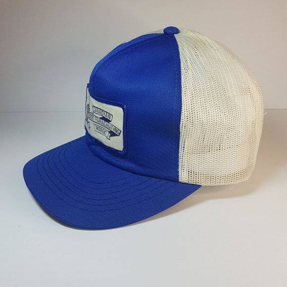 Tags: One size, baseball hat, baseball cap, Dad hat, farmer hat, trucker hat, snapback, blue, white, patch