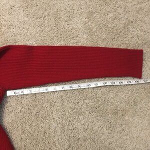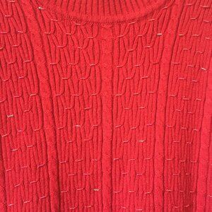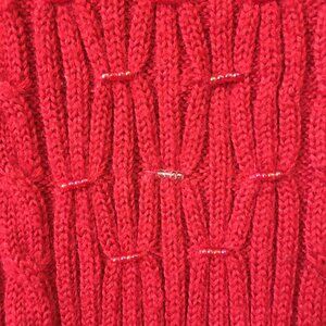 Vintage 80s Cherry Red Cable Knit Beaded Ribbed Sleeve Sweater