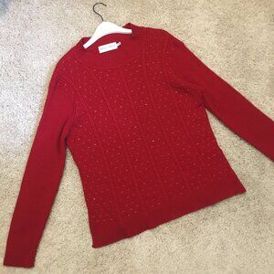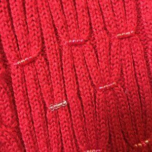 Very good preowned vintage condition (from the 80s or 90s), red cable knit long sleeve, almost mock neck sweater, with ribbed sleeves and back by Beta's Choice. I've attached/sewn some beads in clear and red to it to give it a sparkly edge. Perfect for celebrations and get together parties. Pairs beautifully with skirts