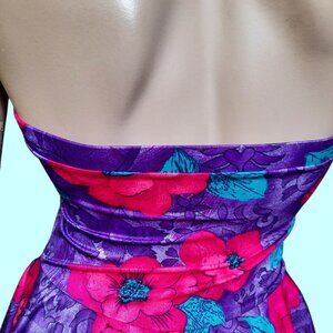 Vintage 80s Christina Swimsuit Womens M Skirted Floral Sweetheart Purple Pink
