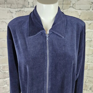 Vintage 80s Club Monaco Velour Zip Front Track Jacket Navy Blue Size Large