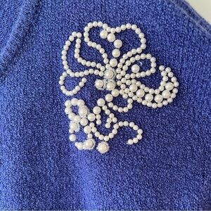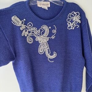 Vintage 80s Cobalt Blue Beaded Pearl Knit Pullover Crewneck Sweater