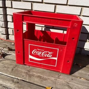 Vintage 80s Coca-Cola / Coke large red plastic crate. Like a milk crate, but bigger! I believe it would have held 6 x 2 litre bottles. Bilingual, French on one side, English on the other. Very good used condition, does have some scuffs around the edges as expected with wear - see photos for details. Measures 14" tall, 15.25" wide, 10.25" deep.