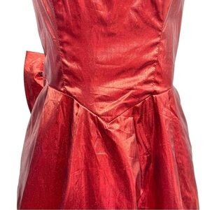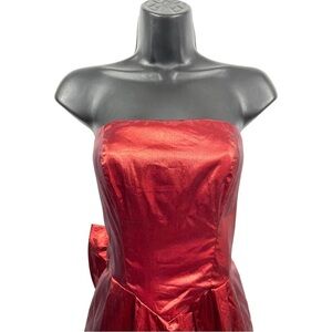 Vintage 80s Collection Red Metallic Strapless Bow Back Frill Back Dress