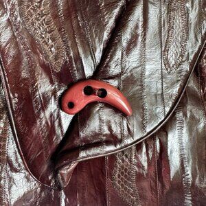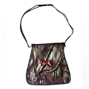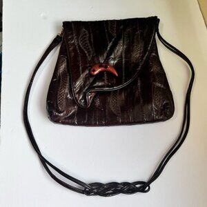Stunning and unique mixed media genuine eel skin bag with snake skin print leather and large horn button detail