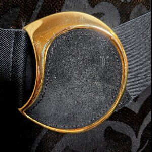 Vintage 80s Elastic Stretchy Waist Belt Black Suede Gold Round Buckle Size S/M