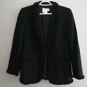 Vintage 80s Escada Black New Wool Longline Button Blazer w Fuzzy Trim GE 38 S/M