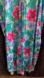 Vibrant floral caftan with a V-neck design. Features a mix of colors in a watercolour print, and is a sturdy polyester double knit, as the old saying goes. Really comfortable. It measures 24 inches across the chest measured flat, drop straight, is 50+ inches long and has shorter cap sleeves.