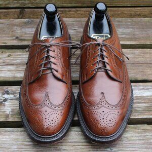 Vintage 80s Florsheim "Gunboat" Wingtips Brown Pebbled Leather, 9 EEE