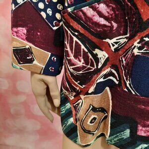 * Vintage 80's tribal print rayon oversized blazer, size M