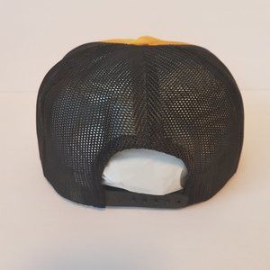 Tags: #2306 One size, baseball hat, baseball cap, Dad hat, farmer hat, trucker hat, snapback, snap back, patch, yellow, black, gold