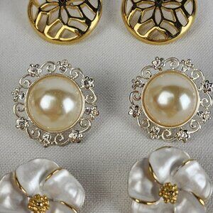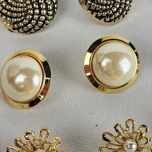 Vintage 80s Gold & Cream Flower Pierced Earrings