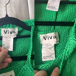 This stunning vintage twinset by Viva includes a matching cardigan and sleeveless tank shell, both hand-knit in a vibrant emerald green with delicate faux pearl embellishments on the outer layer.