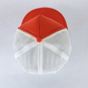 Orange/orange brim (top and underside), white mesh; multi-color logo