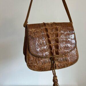Vintage 80s Hornback Alligator Crocodile Leather Handbag Purse Tassel Western