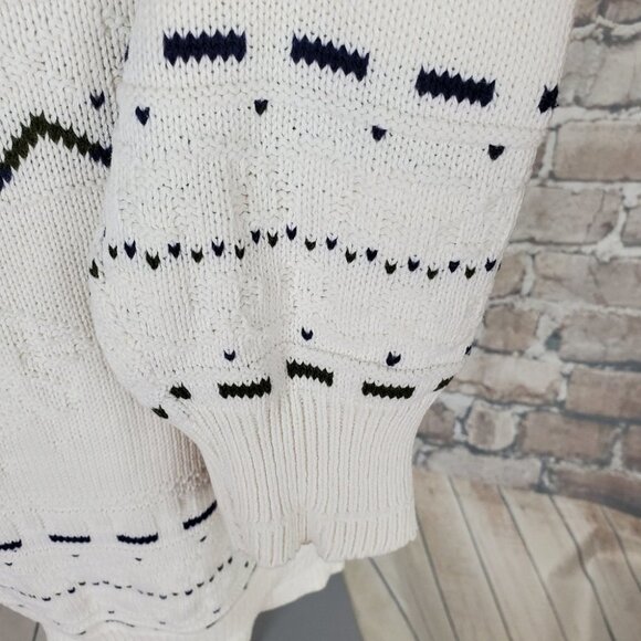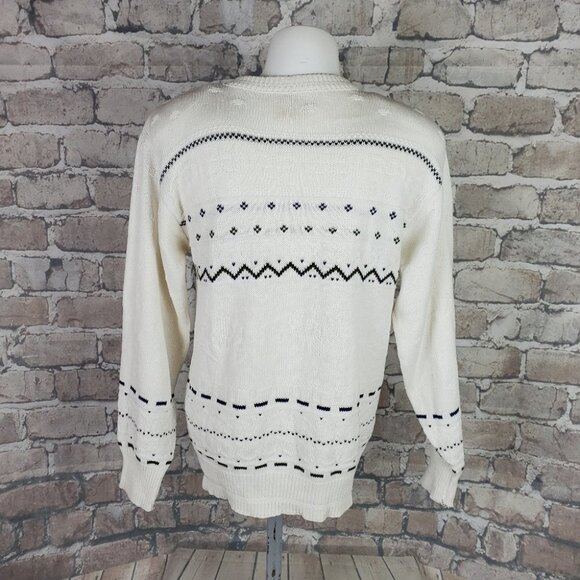Vintage 80s Jacquard Crewneck Pullover Sweater Cream Measures Medium