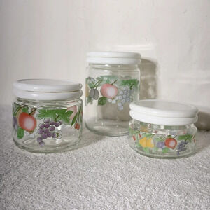 Vintage 80s KIG Indonesia Glass Fruit Flower Canister Set (3)