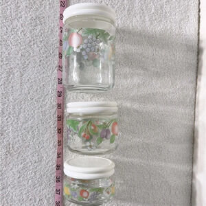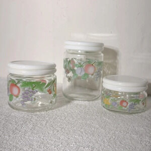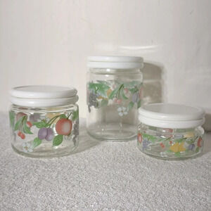 Vintage 80s KIG Indonesia Glass Fruit Flower Canister Set (3)