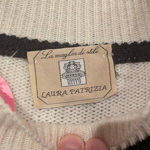 @mlebot the material tag is unreadable but it's a designers sweater by Laura Patrizia from Italy, La Maglia di Stile. It's not wool but feels like cotton. The pit to pit measurement laid flat in inches in 20". Let me know if you have any other questions.
