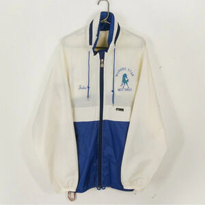 Vintage 80s Kway White Blue Mustang Sports Moto Windbreaker Jacket