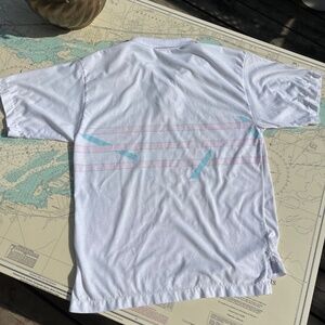 Vintage 80s / early 90s Lady Footlocker collared tennis / golf t shirt. Very good used condition, faint spot on sleeve, see photos for details. Tagged as a size small, measures 17.5" across shoulders, 17.5" pit to pit, 22.5" long.